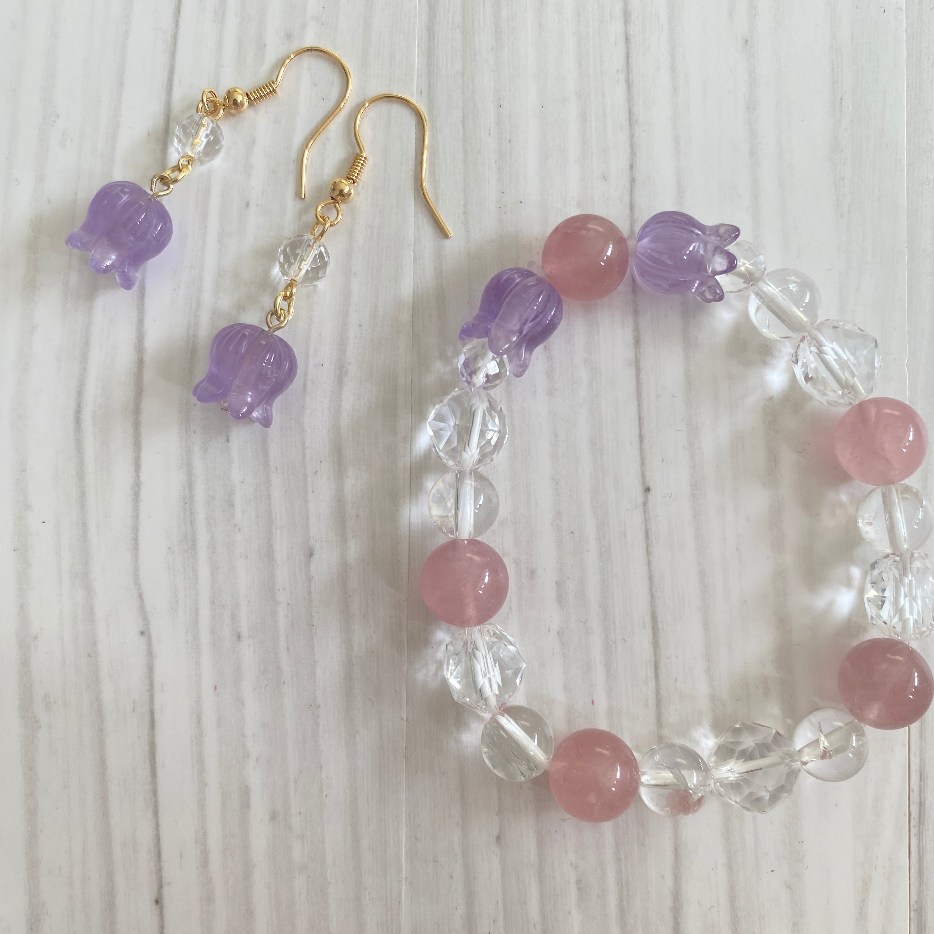 スズランの花の形にカットした アメジスト が天使の羽のように見えるブレスレットができました。