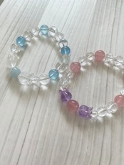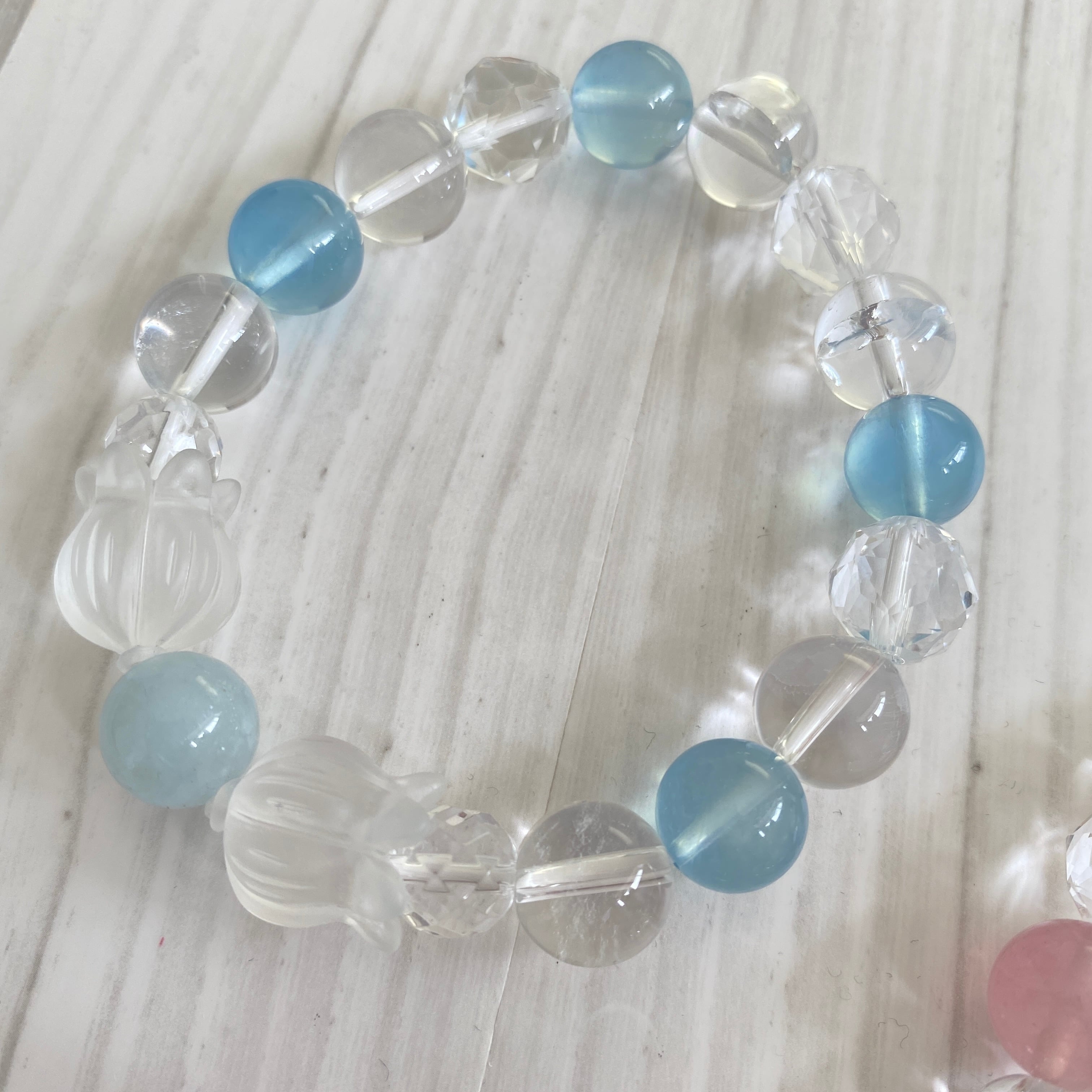 スズランの花の形にカットした 水晶 が天使の羽のように見えるブレスレットができました。